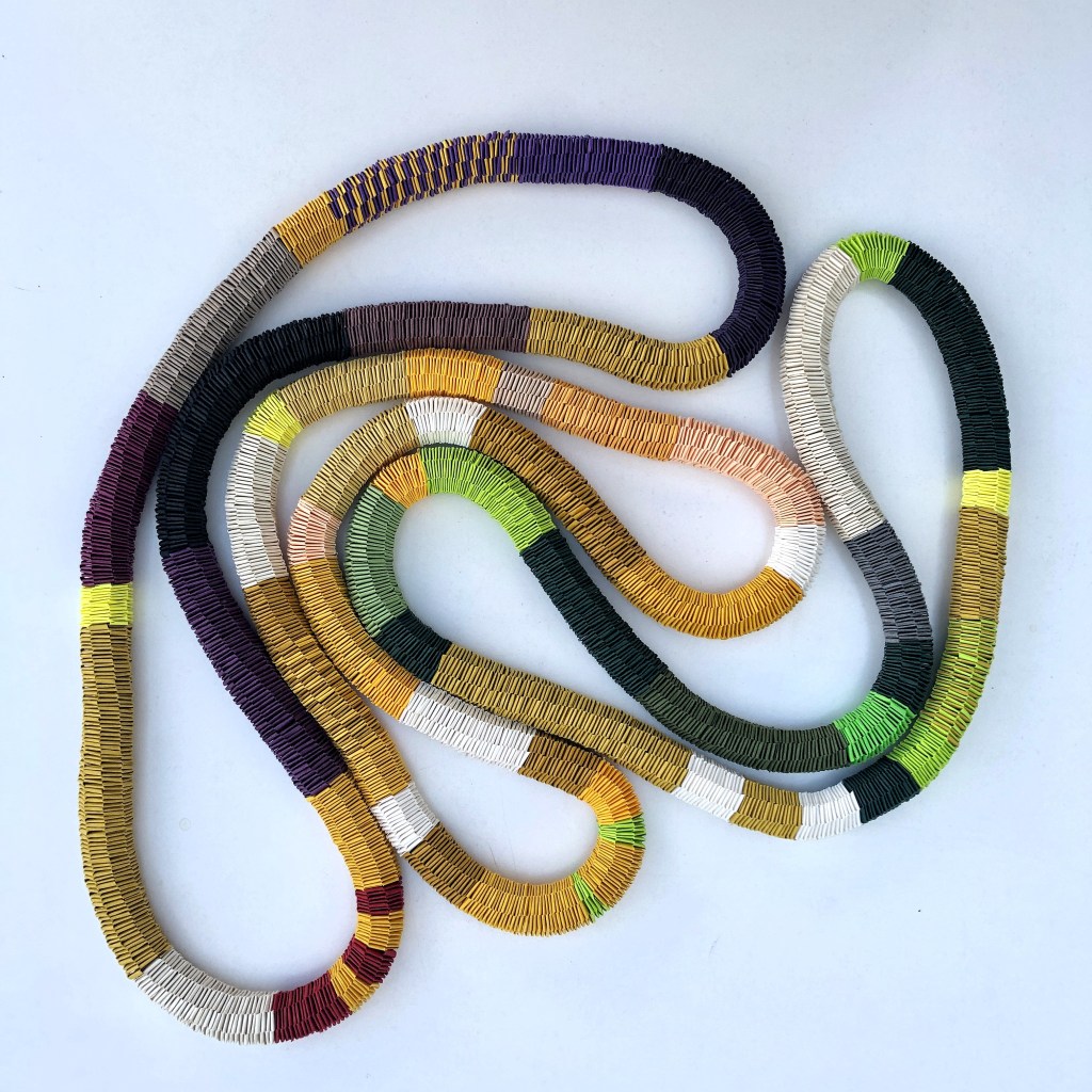Papierketten, aus feinen Papiersteifen geflochten